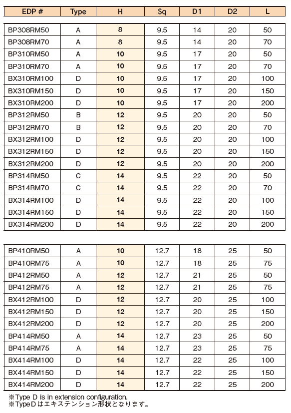 BX412RM200 D 12 12.7 20 25 200